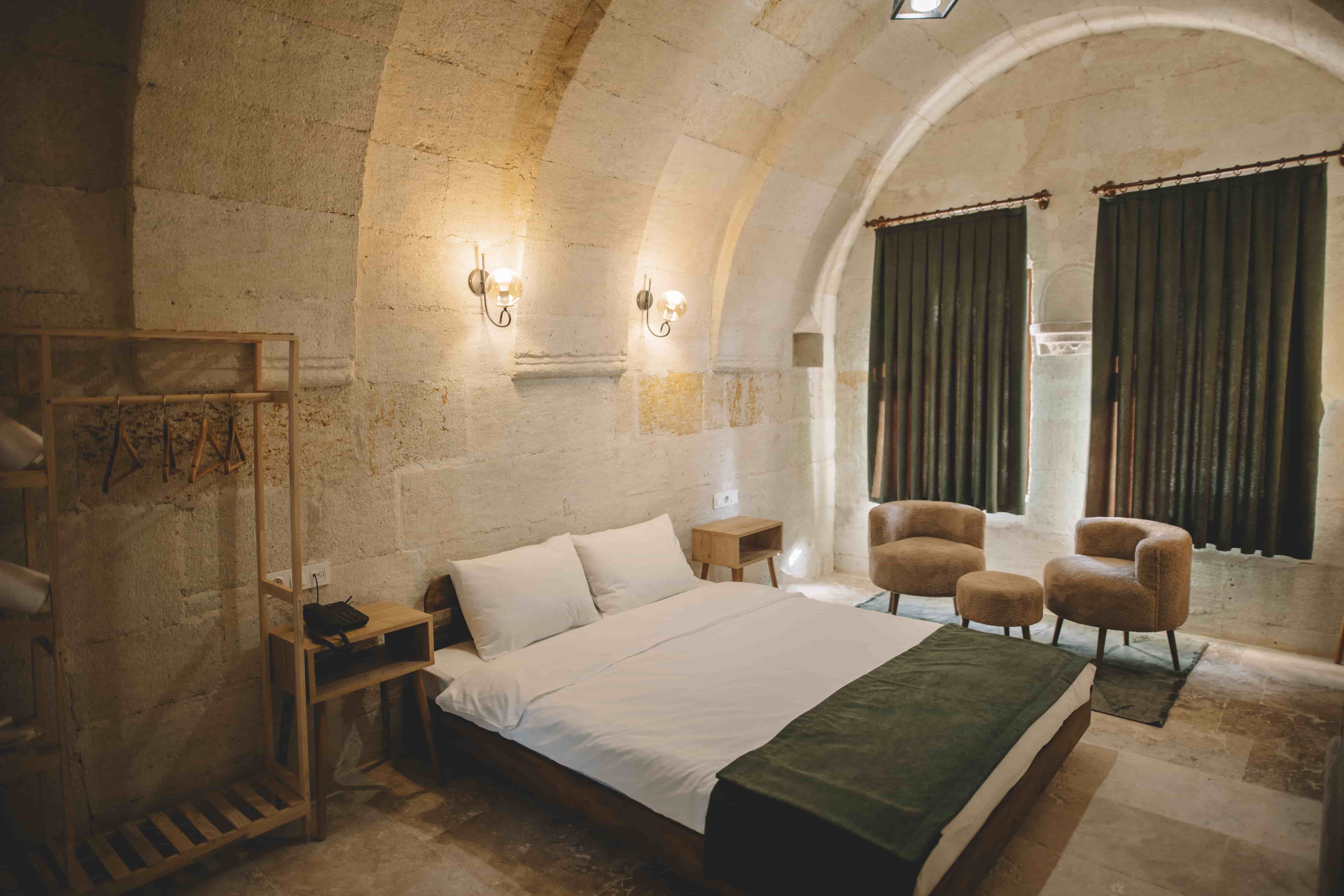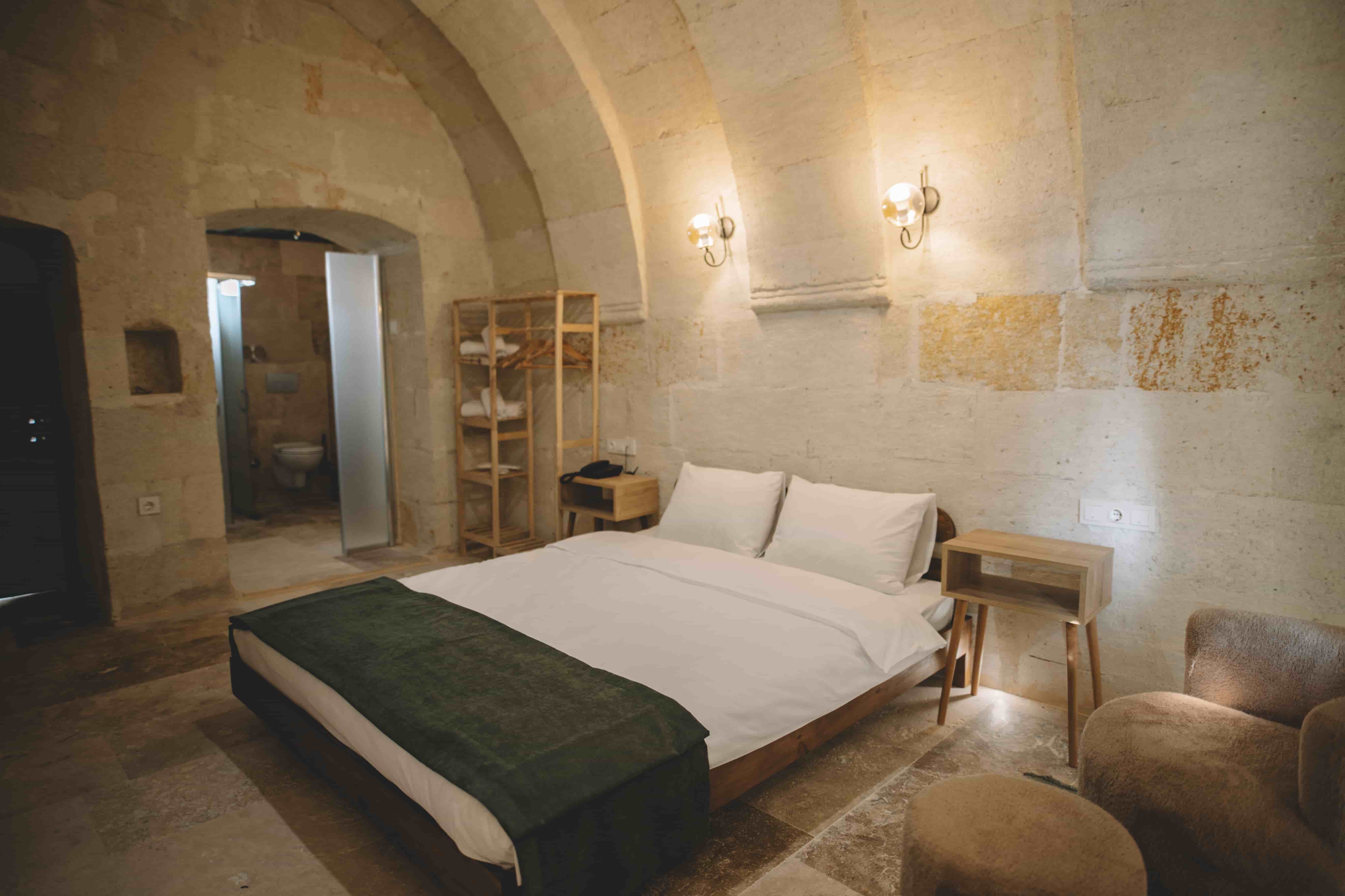 109 Suite Room is one of the most exclusive accommodations at Daphne Cave Hotel. Featuring natural stone walls, elegant decor, and a private in-room jacuzzi, it offers guests a truly unique and relaxing experience.