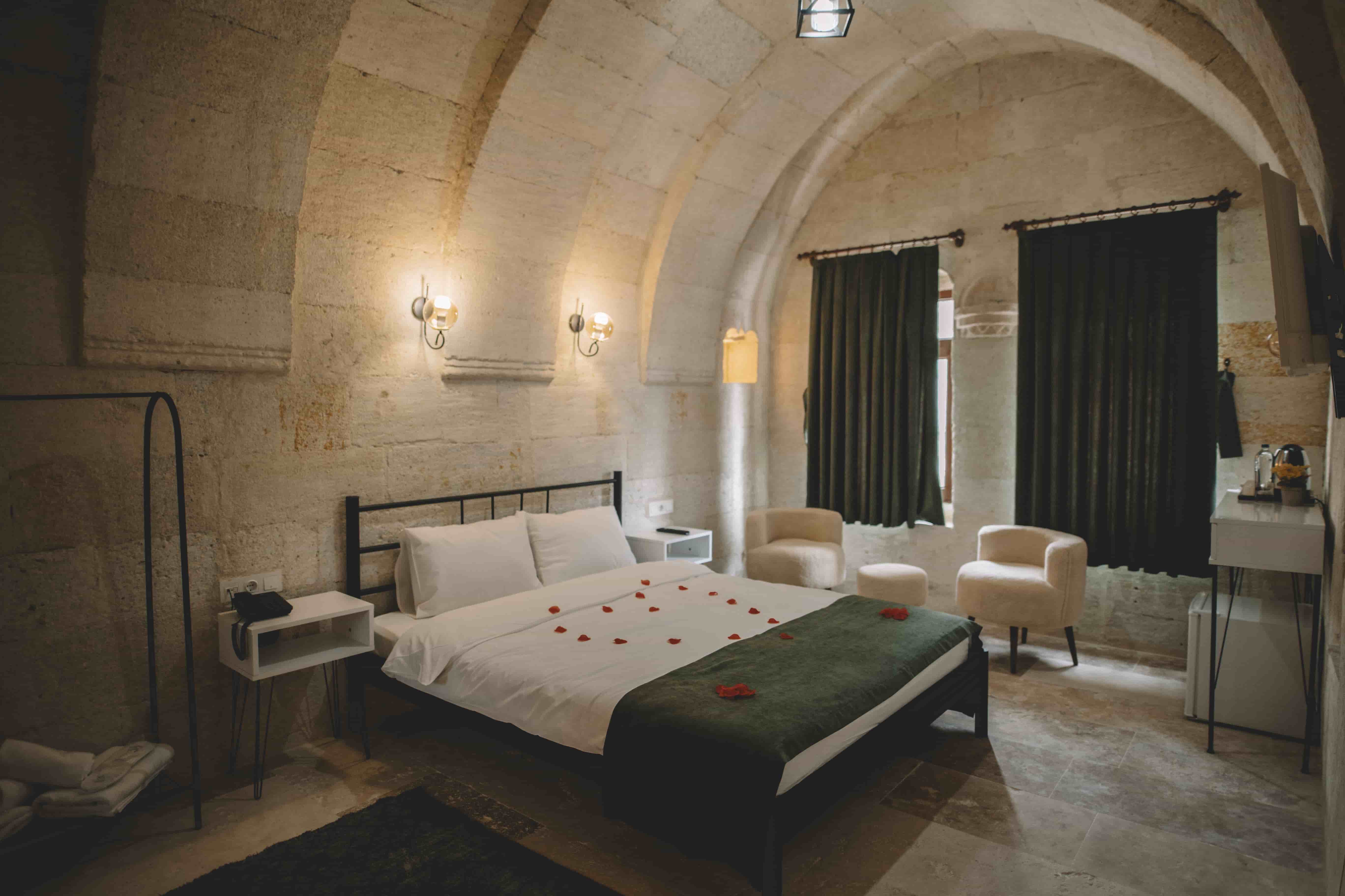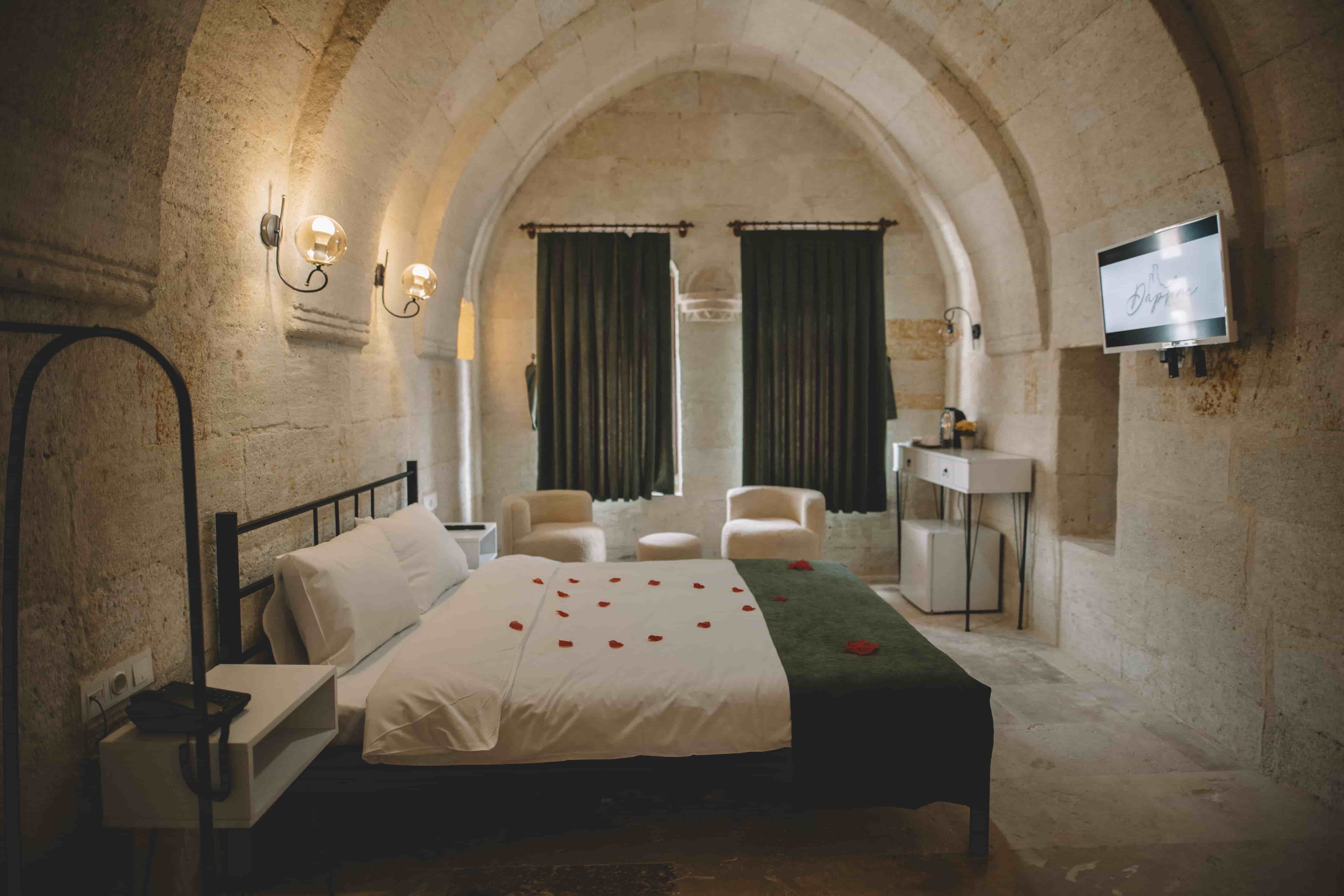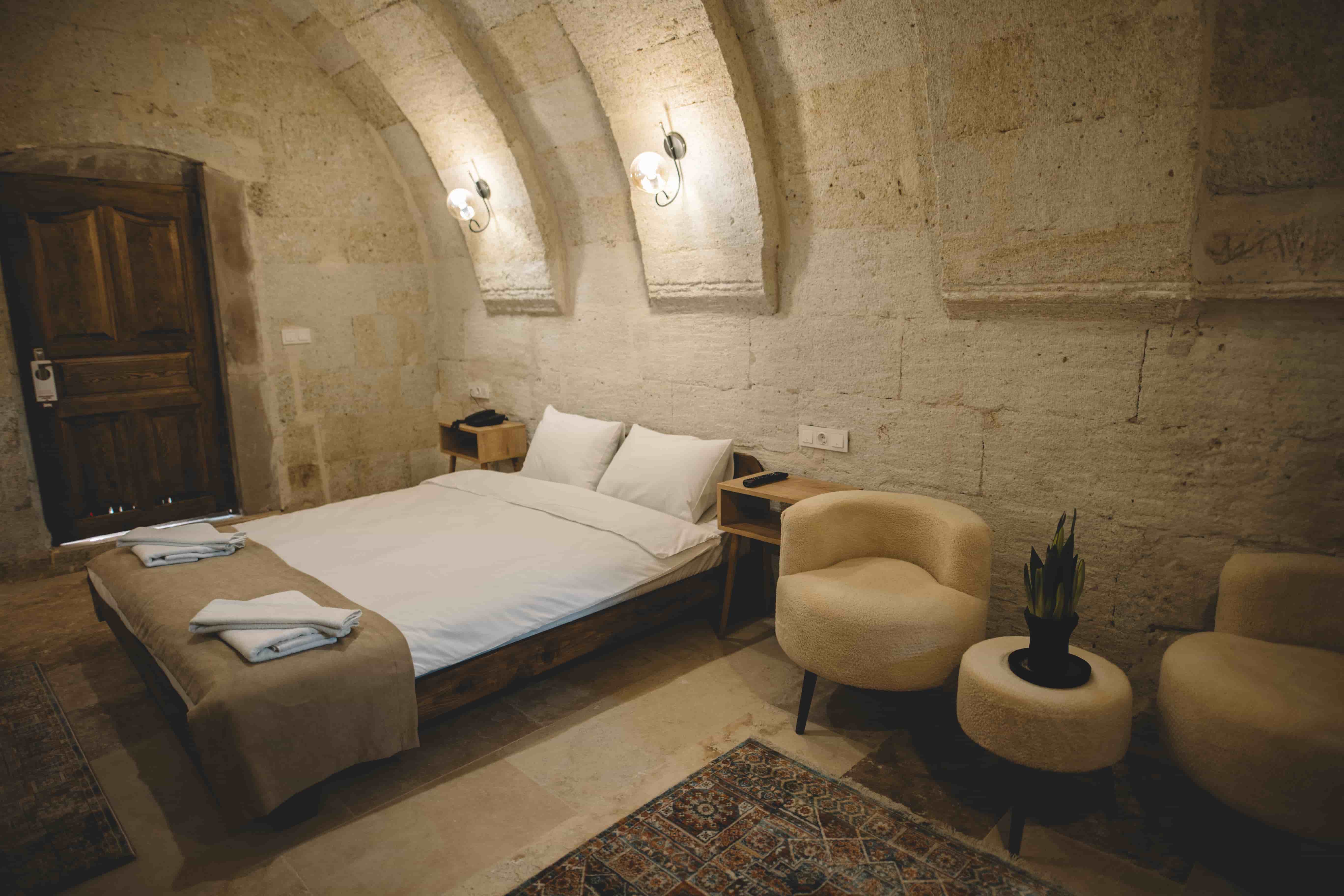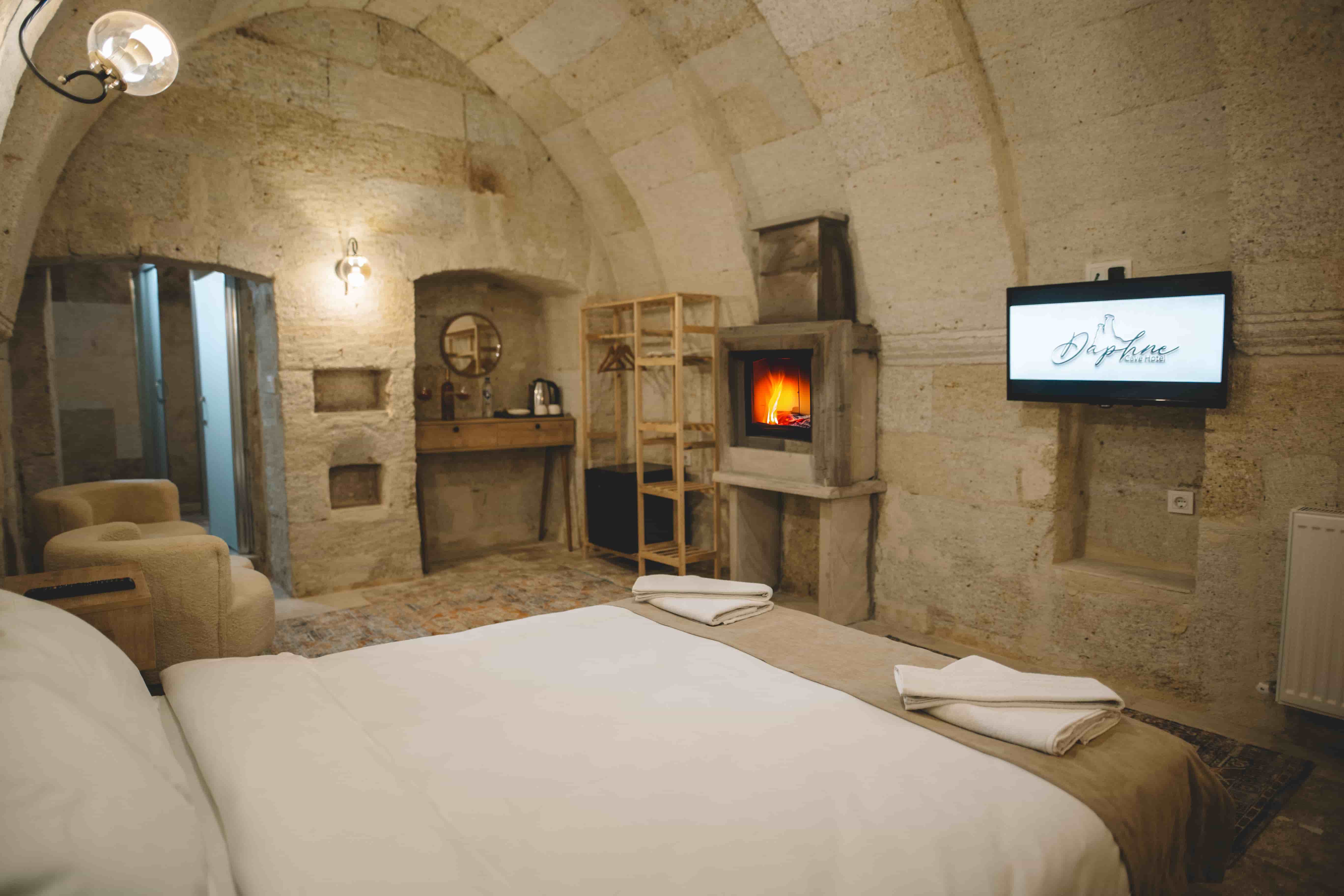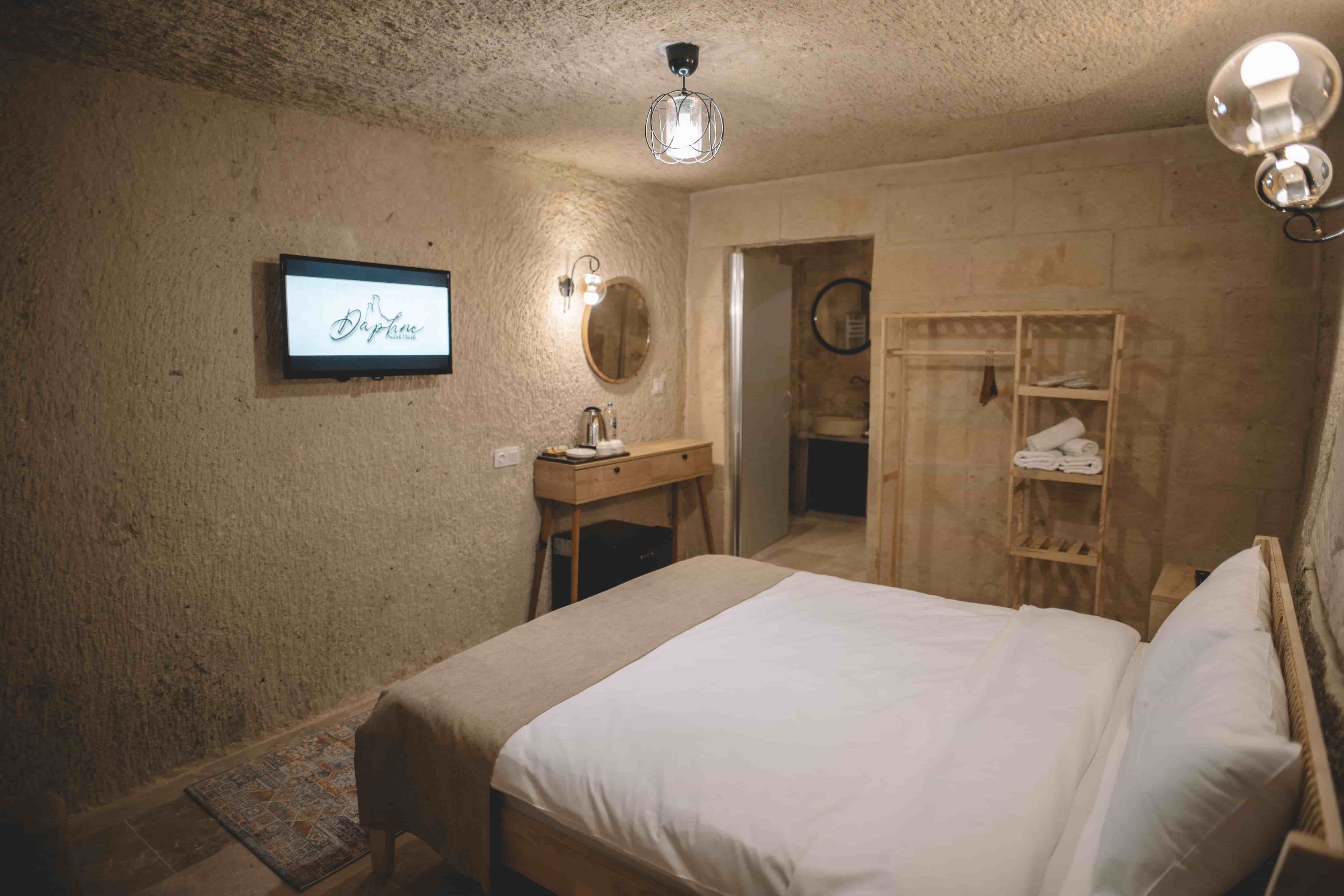 101 Deluxe Oda, Daphne Cave Hotel’in zarif atmosferini modern konforla buluşturur. Mağara dokusunu koruyan taş duvarlar ve sıcak tonlardaki dekorasyon, misafirlere huzurlu bir ortam sunar.