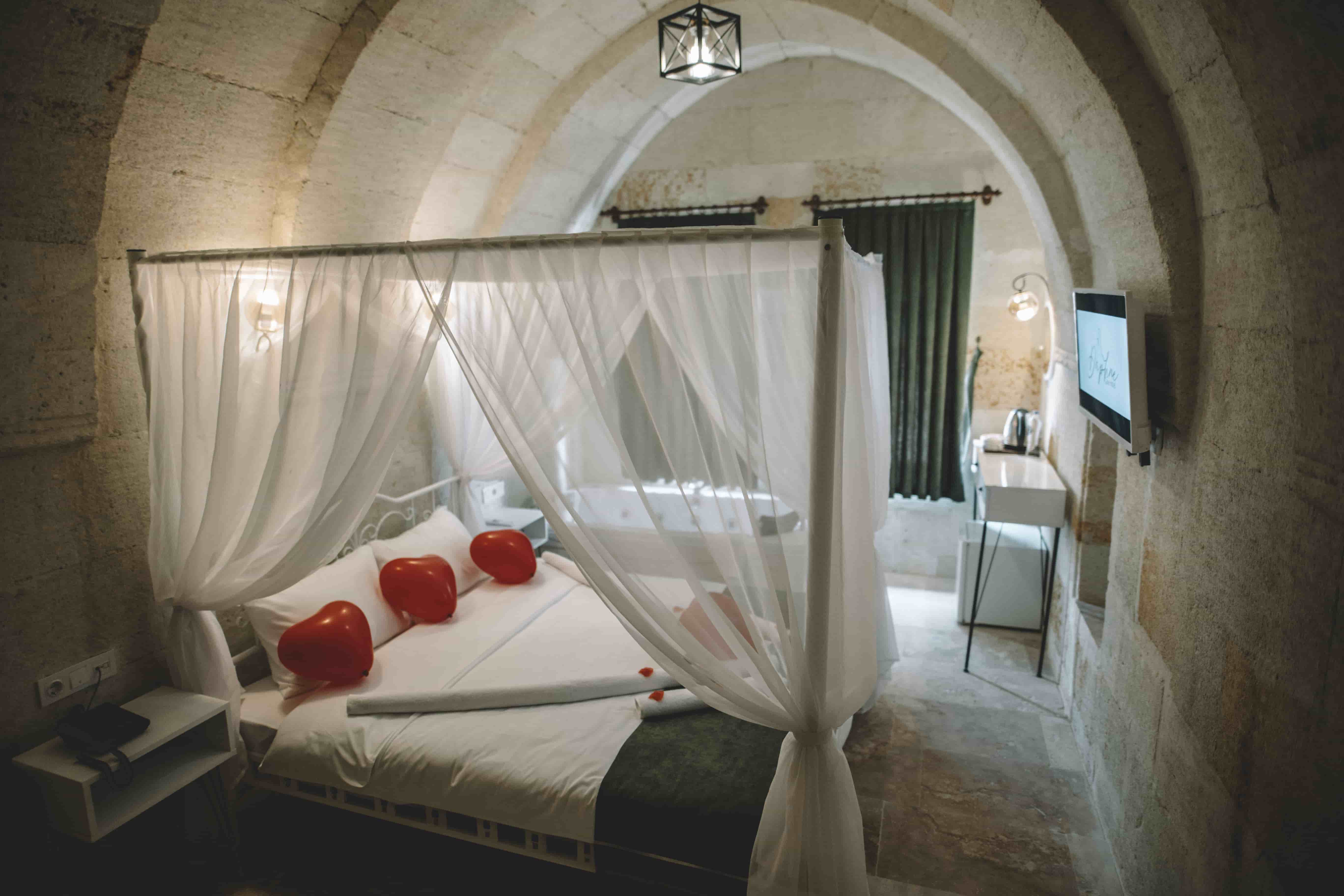 103 Superior Suit, Daphne Cave Hotel’in en özel odalarından biridir. Geniş yaşam alanı, doğal taş mimarisi ve romantik detaylarıyla misafirlerine unutulmaz bir konaklama sunar.