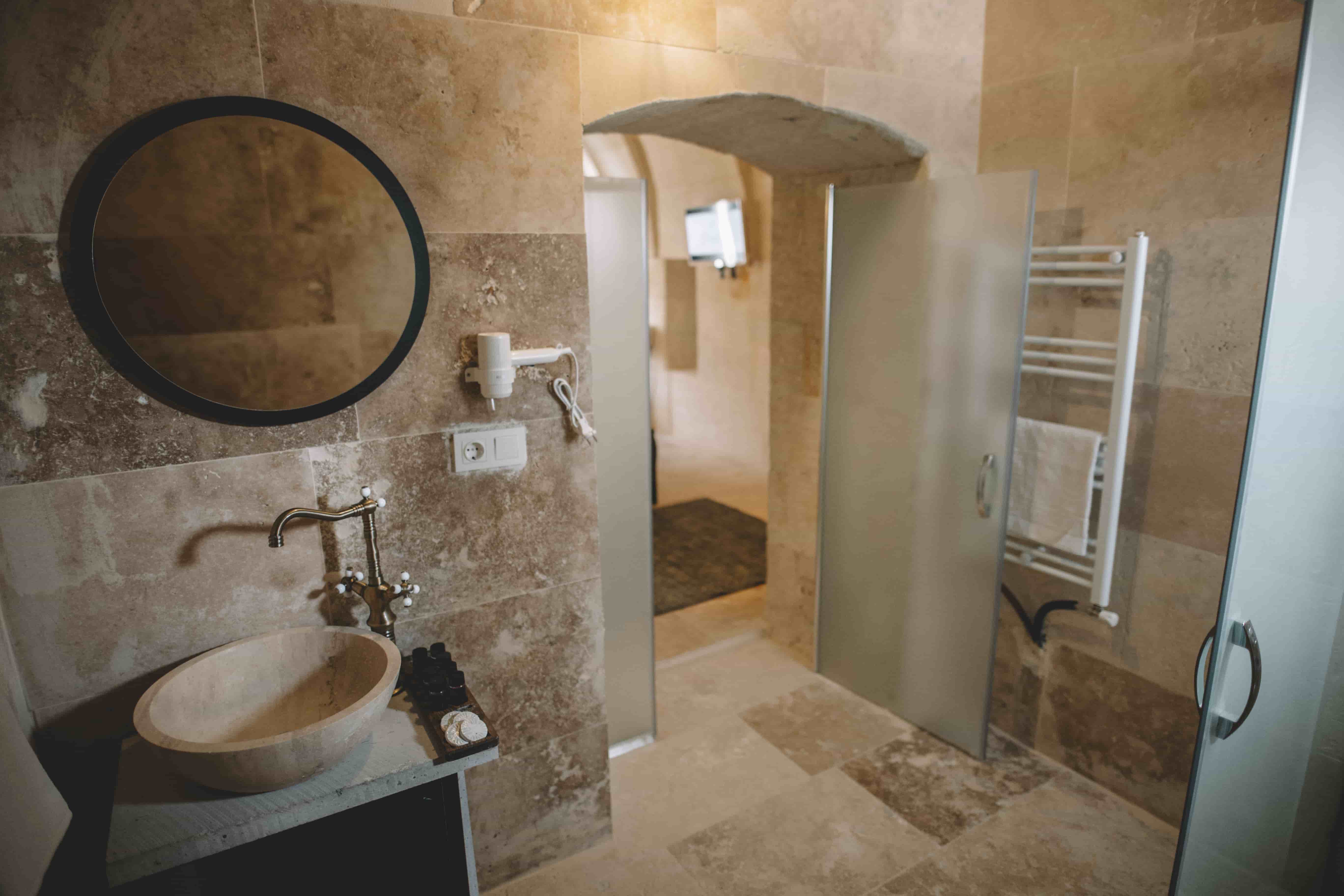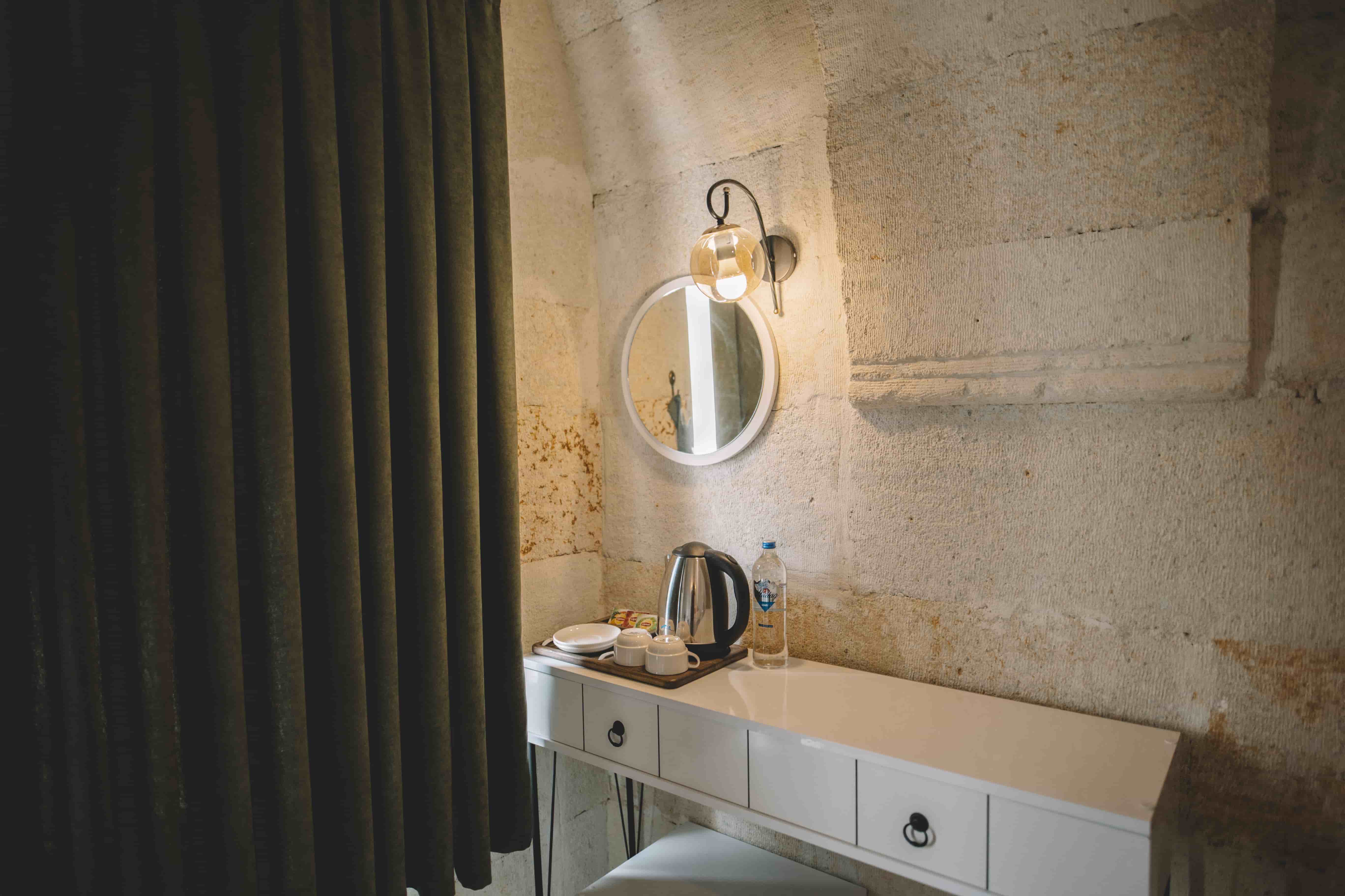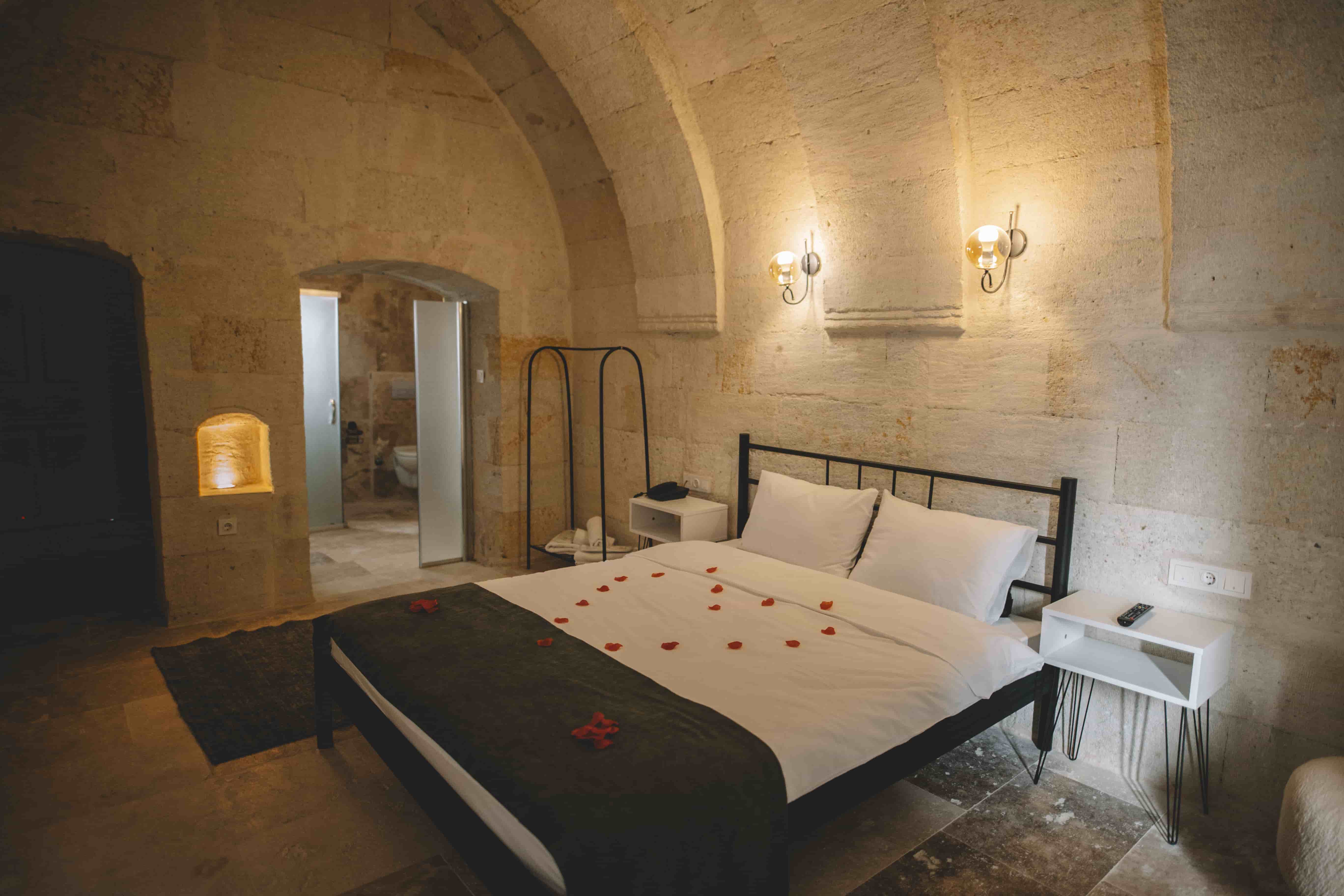 108 Suit Oda, Daphne Cave Hotel’in lüks ve huzuru bir araya getiren özel odalarından biridir. Geniş yaşam alanı, zarif dekorasyonu ve doğal taş mimarisiyle misafirlere eşsiz bir mağara deneyimi sunar.